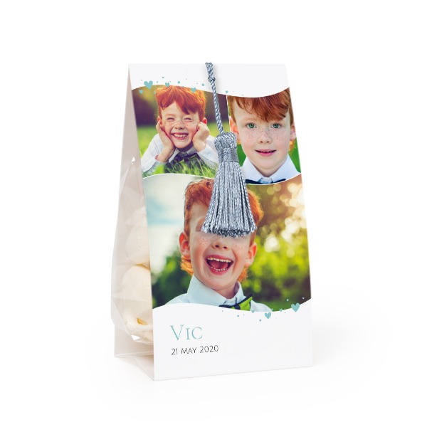 VÀlj din design för GodispÄse med fotoomslag och silverblÄ tofs - 12 st
